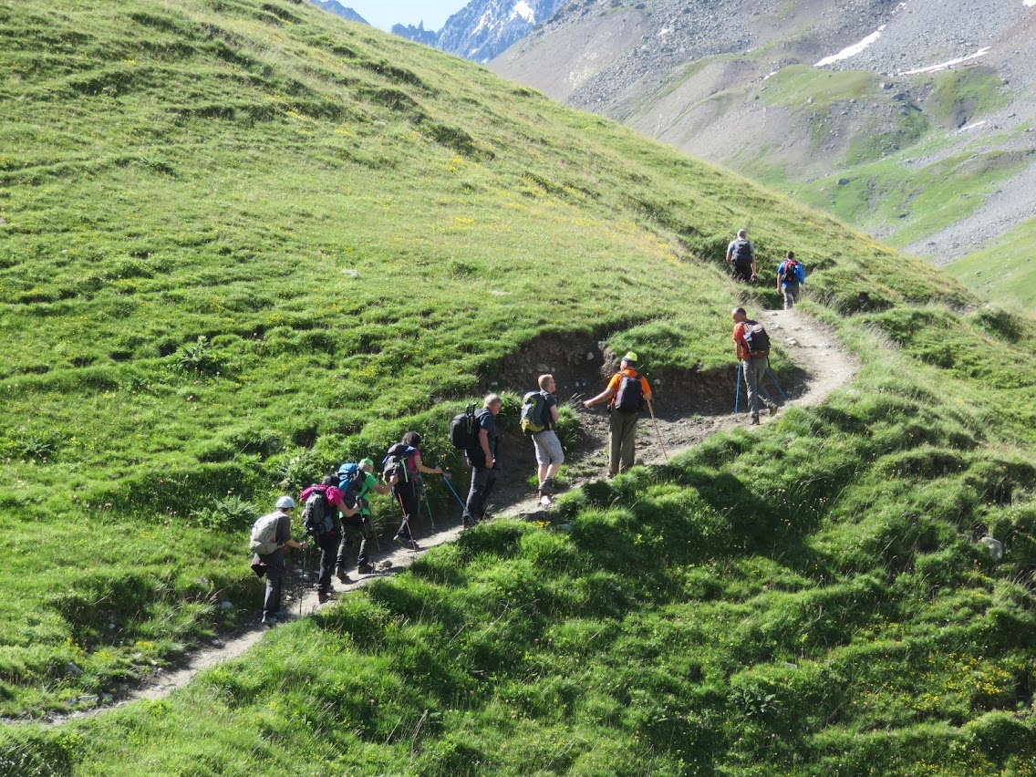 Après le Col d'Arsine, la descente des raidillons n'a pas été de tout repos, choisir le pied à poser en premier, s'aider du bâton, sur cette partie une seule petite chute.